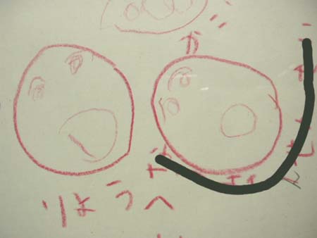 Fさんちの4才のSちゃんが描く人の顔の絵は、ピカソの描く数々の「顔」を彷佛とさせる。で、Sちゃんの絵がすばらしいところは、どの顔もみんな笑っていることだ。これらの笑顔をこの大人の世界に定着させ、永遠のものにしたいと思う。