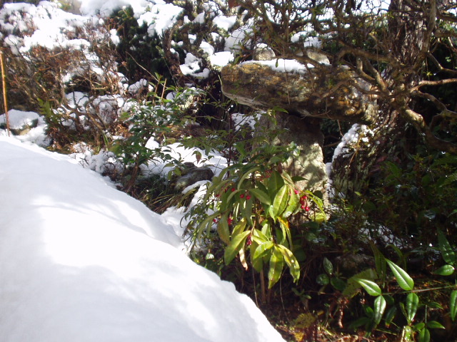 雨の日がつづく。例年ならばこの雨は雪になっていたはずだ。雪は、降りすぎると困るがあまり降らないと恋しくなる。かつてはあれほど雪に悩まされたというのに勝手なものだ。雪化粧という言葉があるが、その通り雪はありふれた風景までも一段と美しく見せてくれる。さりとて冷たい雪。そんな雪の中でも、元気に実を付けている木もある。