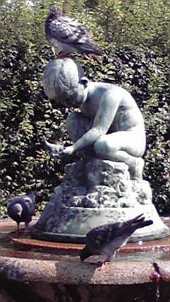 京都会館の敷地に入った。しばらく中庭で噴水を眺めていたが、人が増えてきたので、第一ホールの上の会議場に目を付けた。階段を上がると、そこは穴場だった。誰もいない。広いロビーにはソファがたくさん置かれている。しかも程よくエアコンが効いている。迷わず、ゆったりとしたソファに身を投げ出した。と、三日間つづいた睡眠不足が主張し始めた。そのまま、しばしまどろんでしまった。