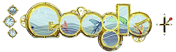 さてその後、調べものをしているうちに、日付が変わって2月8日となった。何らかの目的で Google を開いた所、表紙にいつもと違うロゴが使われている。よく見て驚いた。ロゴは船窓をモチーフにしていた。そして表紙は、2月8日が「海底二万里」の作者ジュール・ベルグの誕生日であることを伝えていた。つまり、ロゴのデザインに使われていた船窓は、ノーチラス号の船窓だったのだっ。