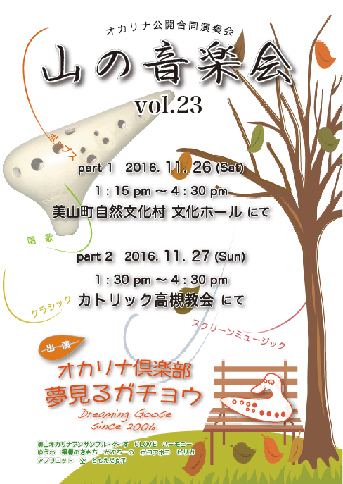 オカリナ倶楽部 “夢見るガチョウ” 主宰。