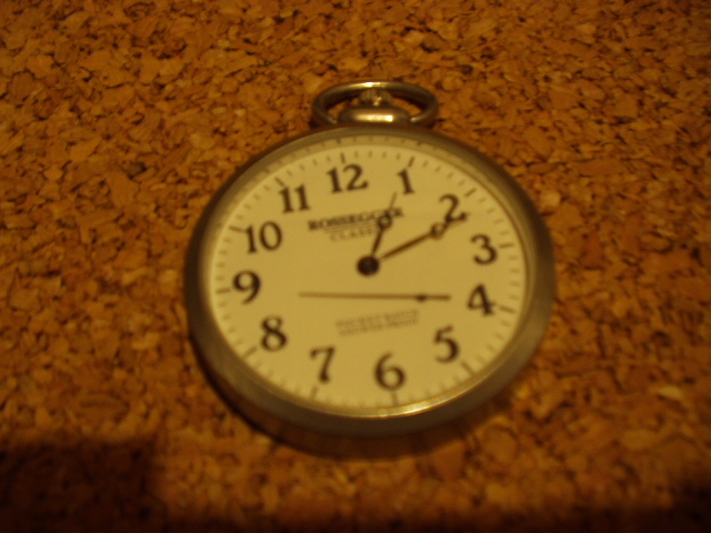 いつだっけか、¥1200で買った懐中時計の電池を¥1300かけて交換した話を #326「陰 謀」で書いた。その時計、ずっと愛用してたのだが、今年の初めにコンクリートの上に落として壊してしまった。動いてるのだが、一日に15分以上も遅れてしまう。しょうがないので泣く泣くもう一個買った。が、数日前、なんということだ、直っているのに気がついた。