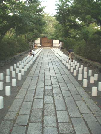 最終日の夜空はきのうまでの雨がうそのように晴れ渡り、ごつごつした石畳の参道の上にまんまるい中秋の名月がぽっかりと浮かんだ。午後8時すぎ、観世音菩薩像の前にしつらえられた平安王朝風の畳の舞台の上で、三田さんの明朗で涼やかな声が流れ始めた。それは、「秋月祭」最終日の幕開けにふさわしい台詞であった。