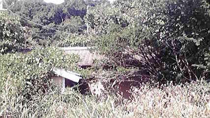 小走りに建物の真上へ行ってみた。生い茂る木と笹と雑草のすき間からくずれかけた瓦屋根の平屋建ての建物がのぞいている。ワタシは斜面を降り、草をかき分けてその建物まで行ってみた。