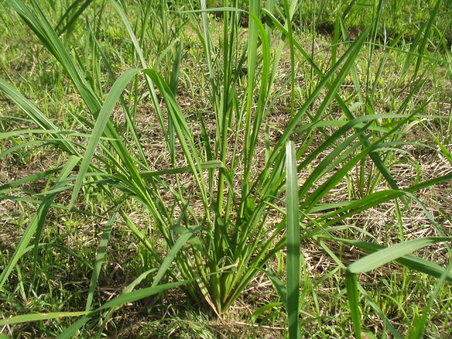 どんどん分蘗(ぶんけつ=茎が分かれて増えていく生命活動)する稲。乾田で。