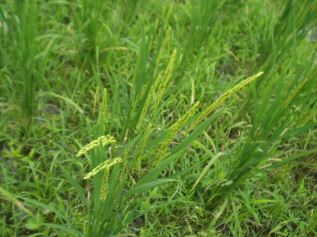 草を生やしすぎたら水温が上がらんし、刈りすぎたら土が肥えんし、加減がむずかしかー。おらちの田んぼは不耕起だから稲はふか〜く根を張っている「はず」なので、少々他の草が生えても養分の取り合いに負けることはない「はず」だべ。が、なにせ初めての田んぼだから、何から何まで「はず」ばかりだべー。