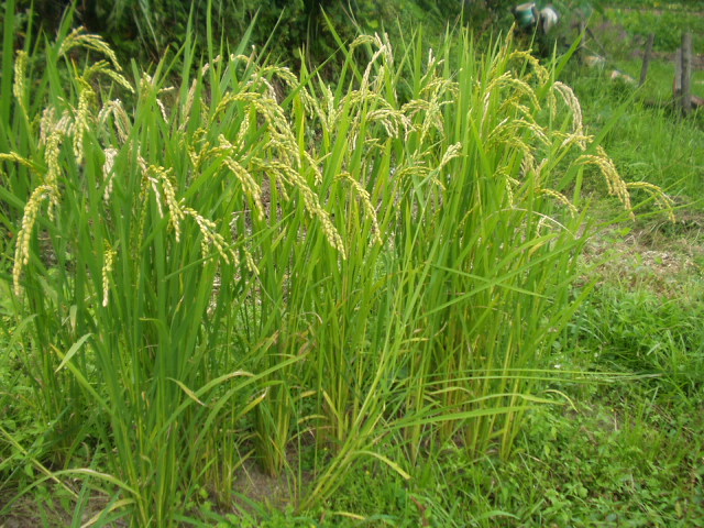 この稲の種モミは、他の不耕起の田んぼで穫れたものだ。不耕起稲の二世だから、少しずつ野性の遺伝子が目覚めつつあるはずだが、まだまだ人工的な稲の遺伝子が勝っているだろう。が、今年実った種モミから三世を作れば、さらに野生化した強い稲ができそうな気がする。