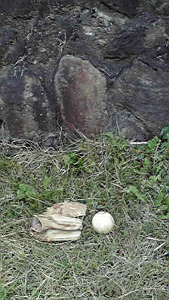 軟球3個とソフトボール1個も出てきた。で、きょうはグラブとソフトボールを持って、孤独な練習を始めた。