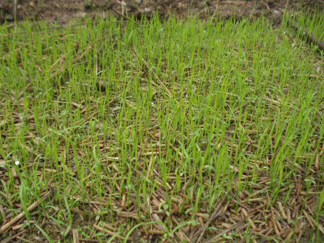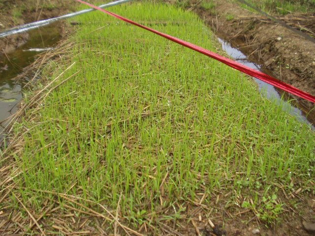 ふるった土を使った乾田跡の苗代の発芽率は、水田跡の二倍ほどのようだ。思ったより差がついた。手間を考えると、これからは水田跡の手法をメインにしたいと思っているワタシ。ちと見込み違いの結果だ。
