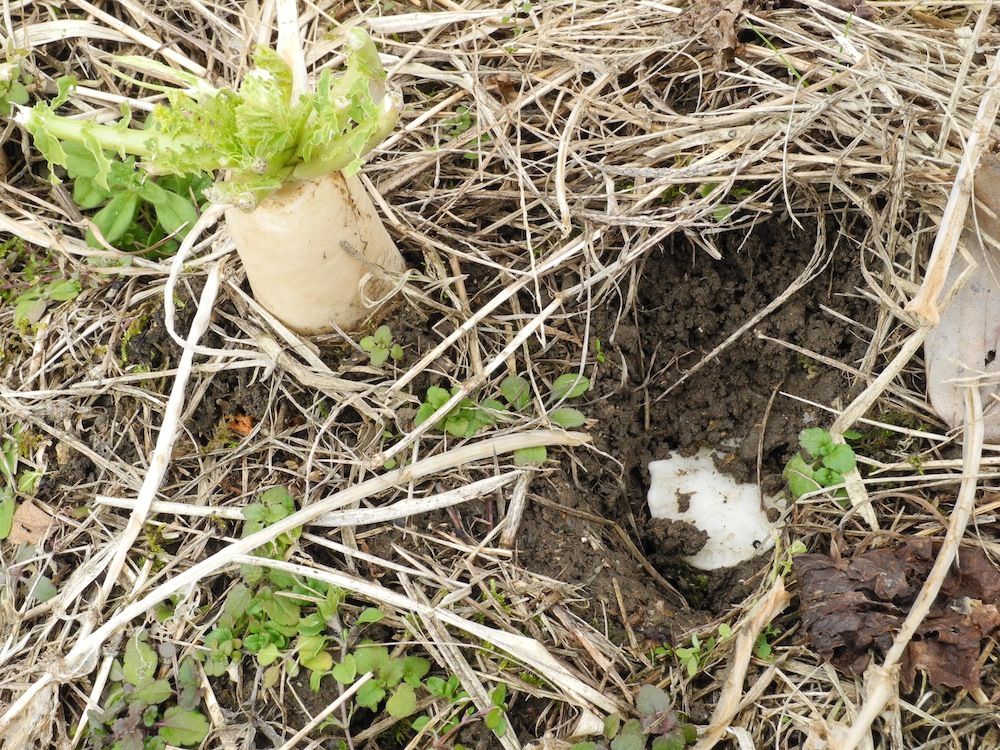 すぐに爆竹で追ったが、そのあくる夜(旧正月、新月の夜だ)ほんの一晩の間に、母子鹿が嫌いで食べ残していたブロッコリーすべてと、ネギと、たくさんのスイセンの芽まで食べられてしまった。