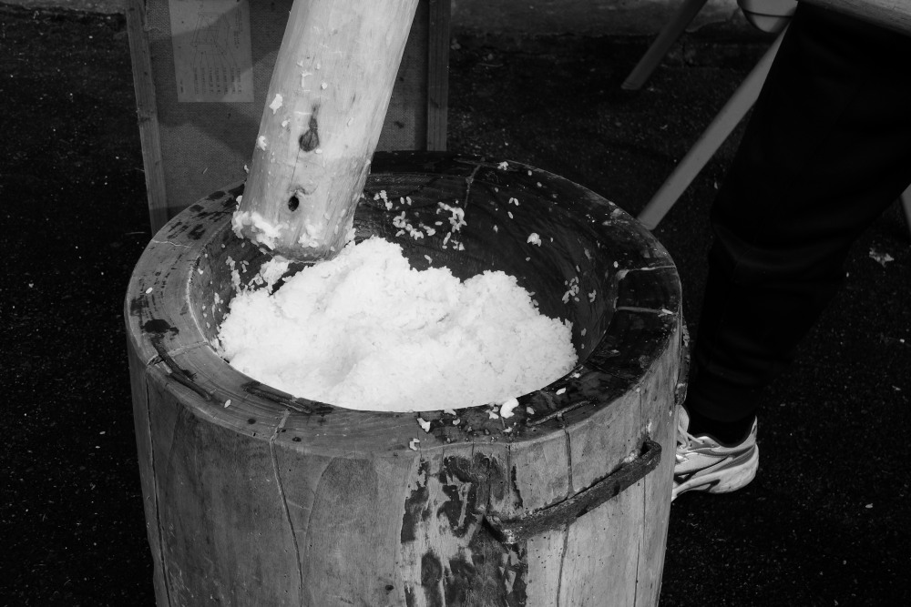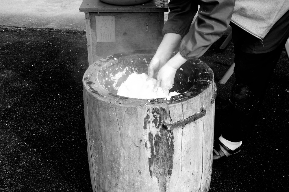 が、餅つきを薪の火と杵と臼ですることには、他の行程の一部を仮に手作業で行なうとしても、それとはまた違った意味がありそうだ。