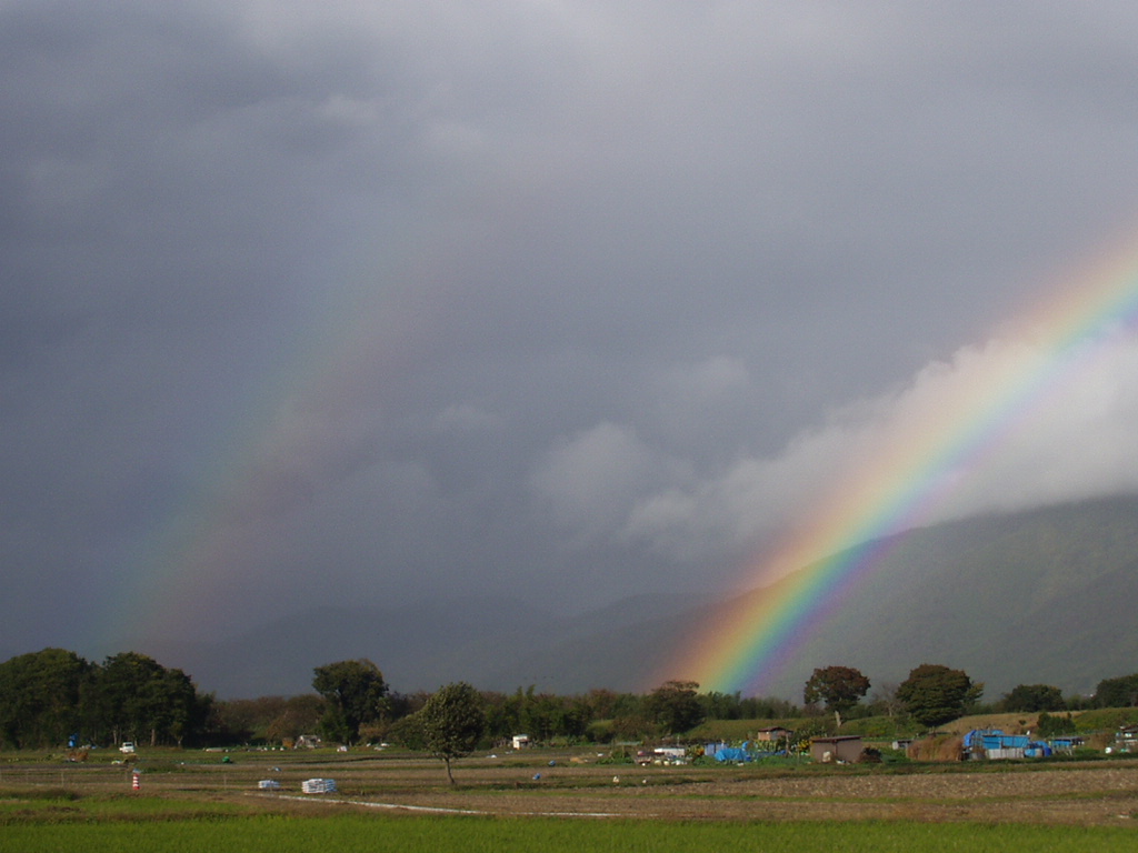 五年前の十一月。現在の住処を初めて見に来たとき、ここへと至る途上とここに到着してから、計四本の虹を見た。歓迎のアーチをくぐりつづけてたどり着いた家だという気がした。今年は、初めてのお米作りを進める中で、これまた初めて見た環天頂アークこと逆さ虹に大きな危機を救われた。雨乞い師見習いのワタシに、虹はこれからも行く手を指し示しつづけるのだろうか。