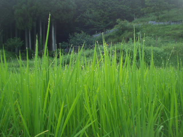 この時間帯の稲は、しゃきっと背筋を伸ばしている。