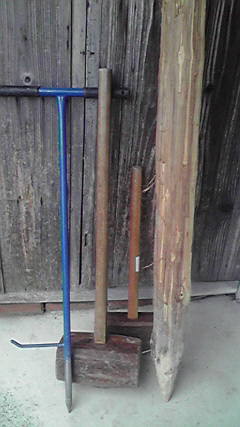 (杭には栗の木が丈夫で重宝するが、杉の杭は掛矢でクリーンヒットしたときの音と感触が最高)