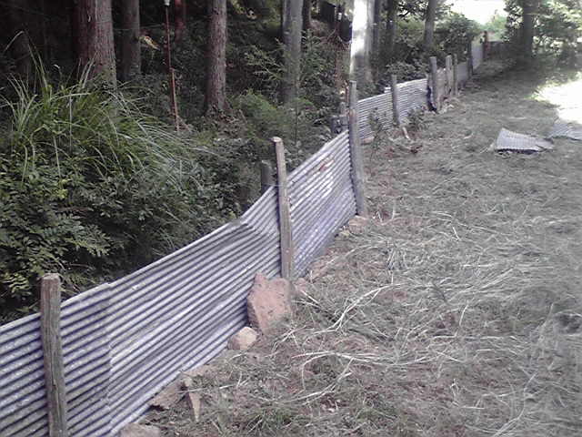 トタンと杭は、五年前までウチの猪囲いに使っていたものも併用。