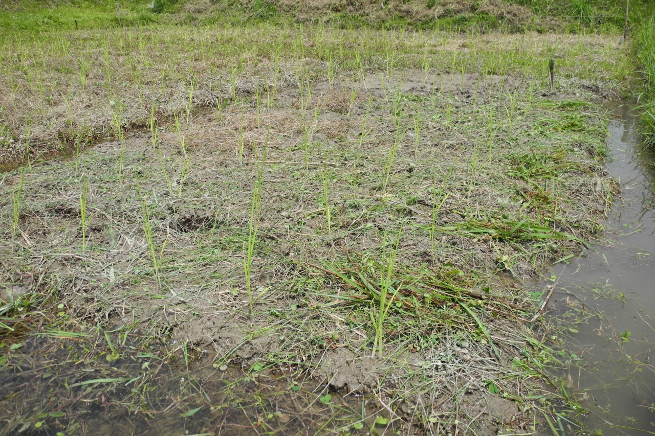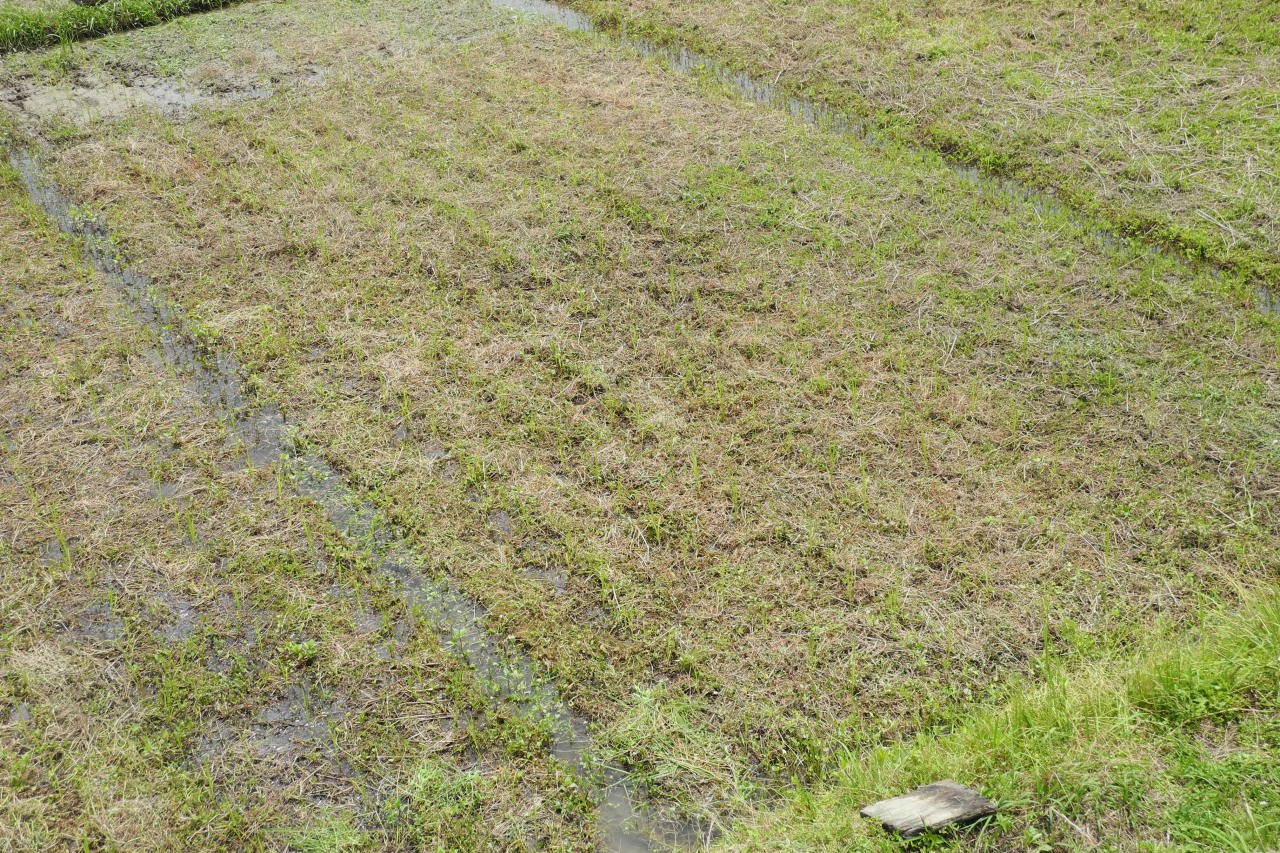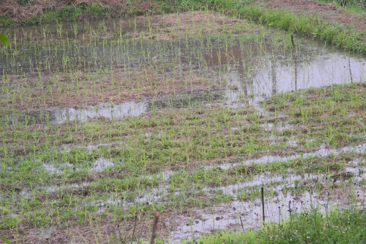 風が引き連れてきた強い雨は、わずかな時間で田んぼ全面を水に浸した。