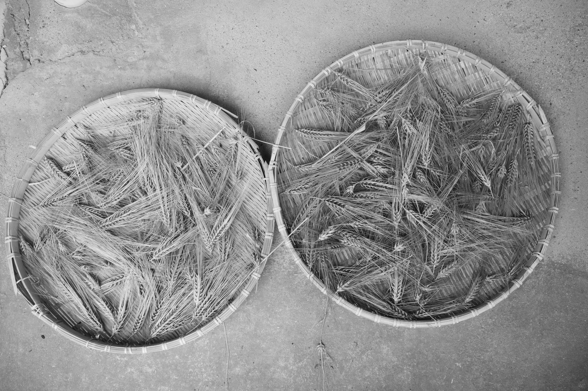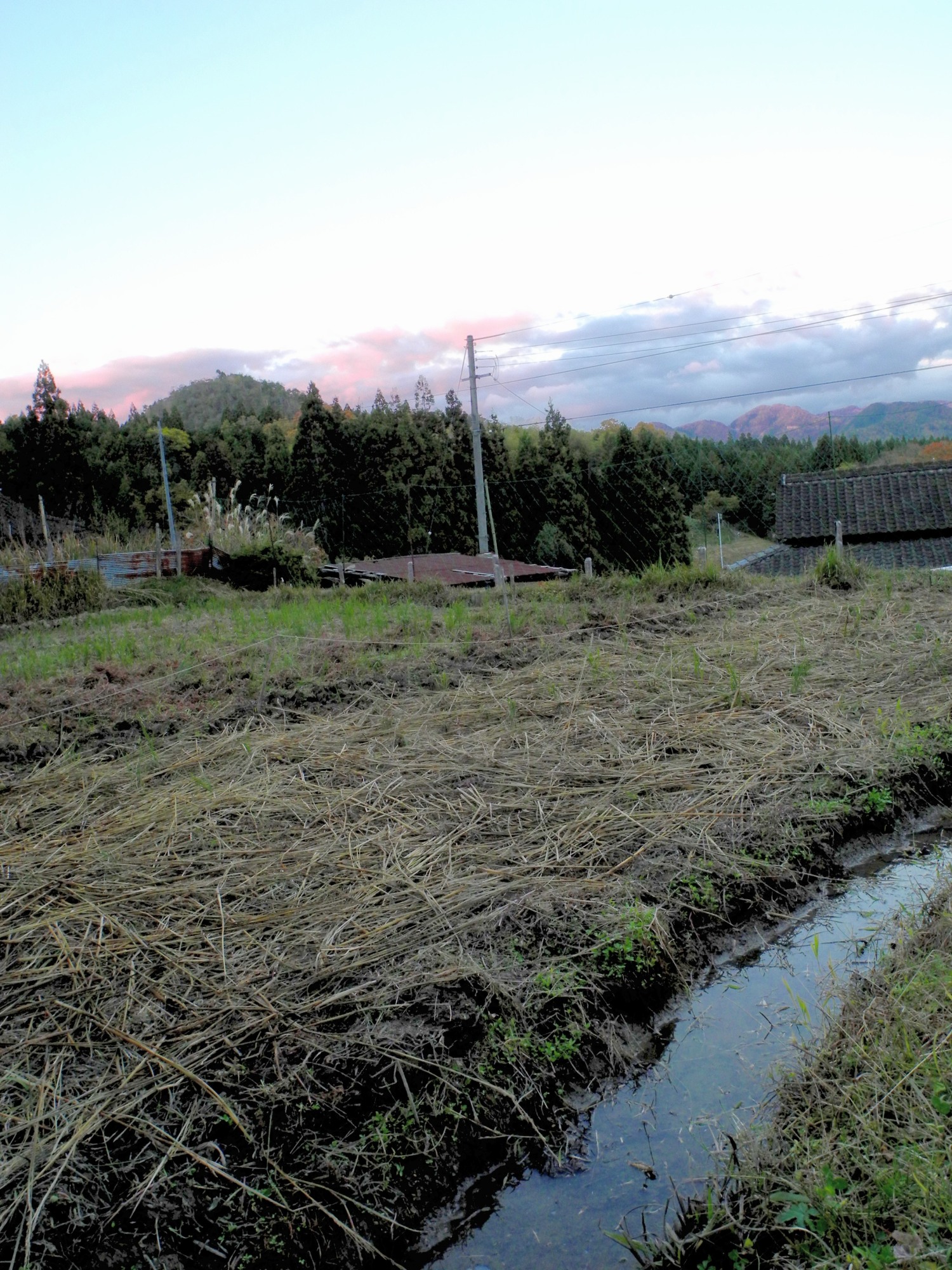 11月中旬、麦蒔きを控えた田んぼ。先に刈られた稲のワラが振り撒かれている。