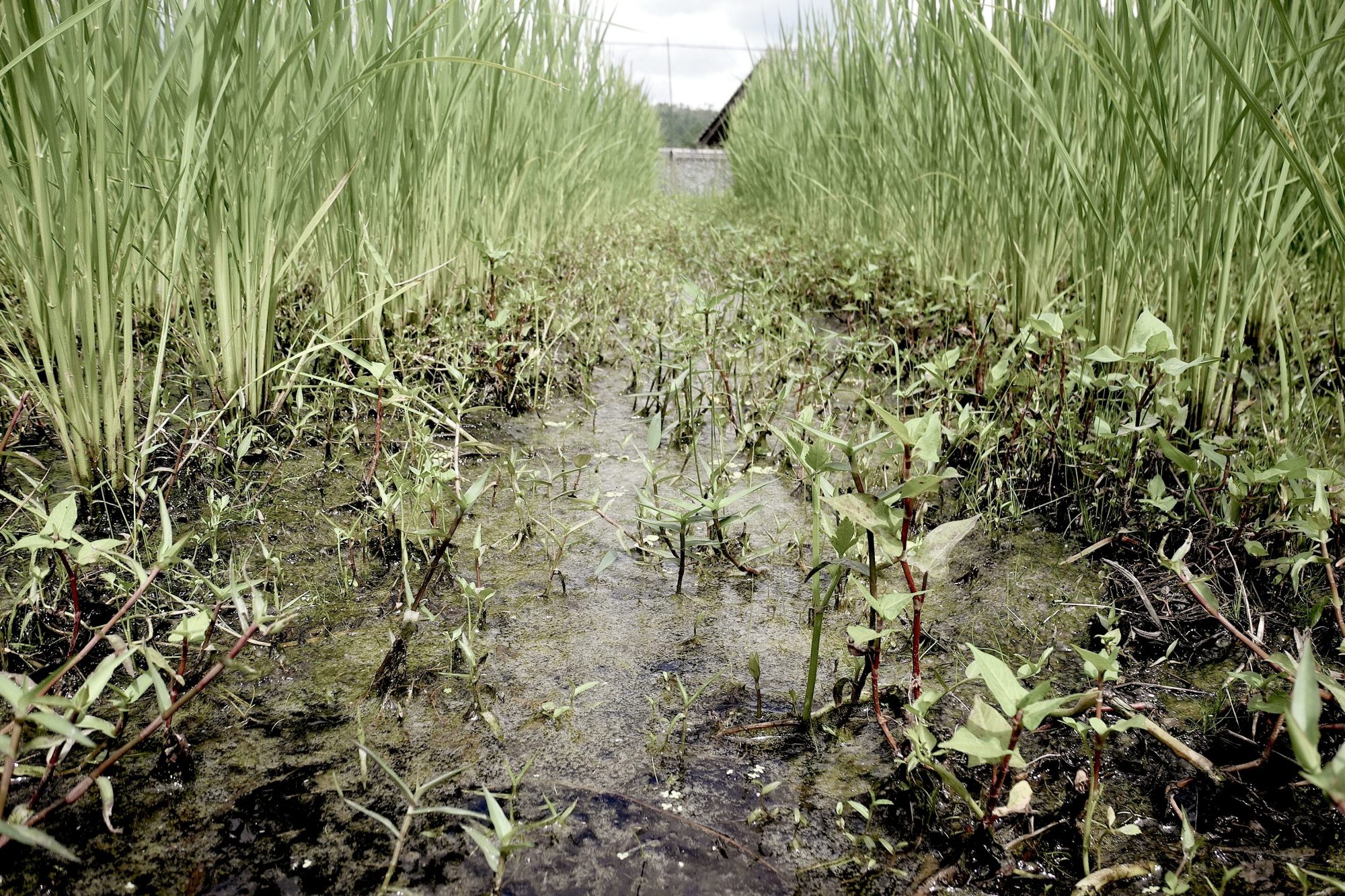 草に埋もれたこの細流が、田んぼの命綱であること。