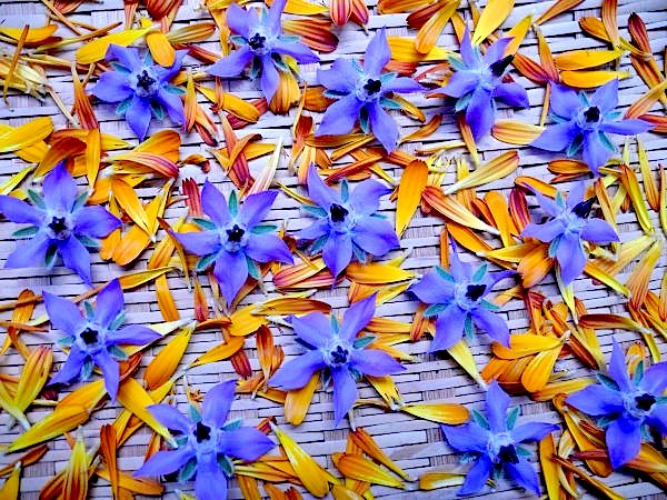 ボリジとカレンデュラの花を干してハーブティーに。