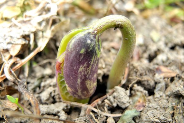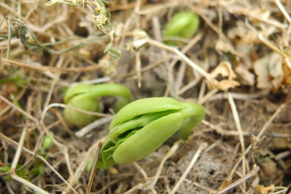 このオクラを播いた畝で倒されているのは、うずたかく生い茂っていたカラスノエンドウとクローバー。