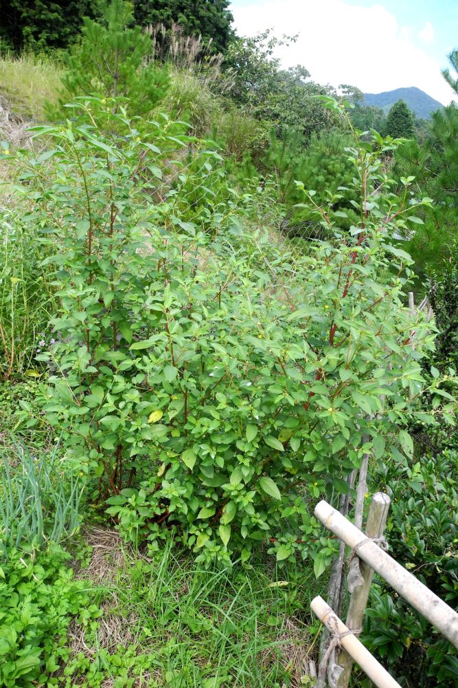 これは去年の写真。肥料もろくになしで180cmほどになって、赤い茎は木のようだった。