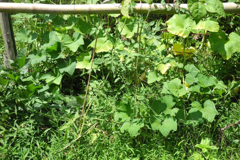 畑ではいく種類もの野菜と野草が重なり合って混沌としてきた。