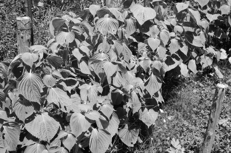 暑さに弱いエゴマは炎天下ではうなだれてしまっている。