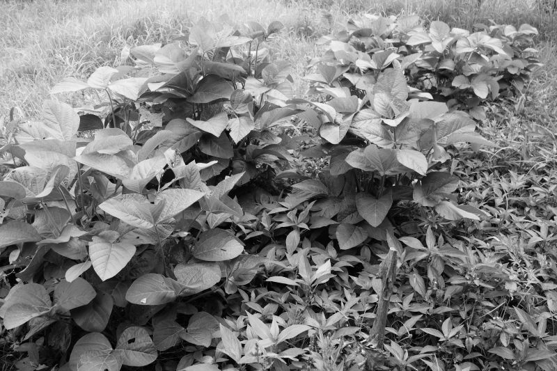 黒豆の周囲は保水のため草を刈らずにいる。