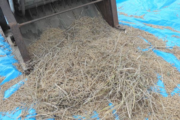 このままでは籾摺りをできないので、籾とワラ屑などとを選別する必要がある。