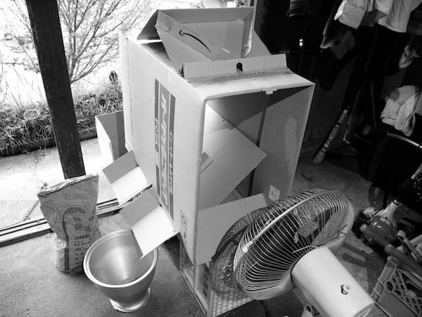 実を言うと、三年前から自作の「段ボール唐箕」を使っていた。